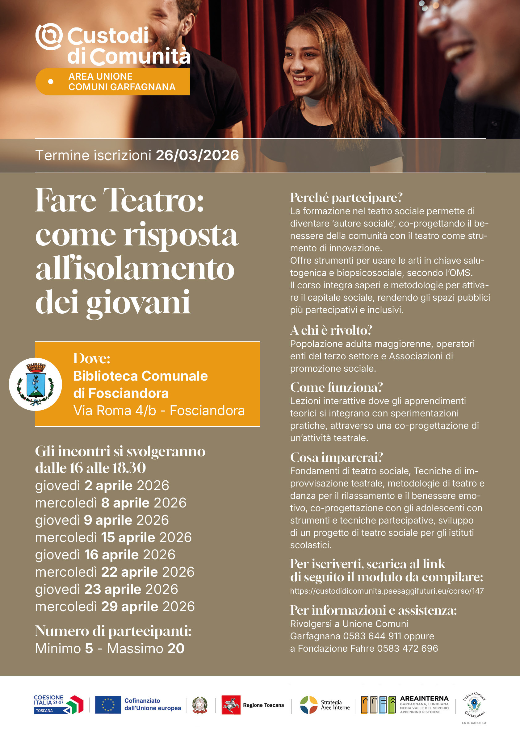 La formazione nel teatro sociale può permettere di passare dal ruolo di attore sociale a quello di ‘autore sociale’, capace di co-progettare il benessere della propria comunità attraverso il teatro, che diventa strumento di innovazione sociale e una vera e propria infrastruttura urbana e umana.